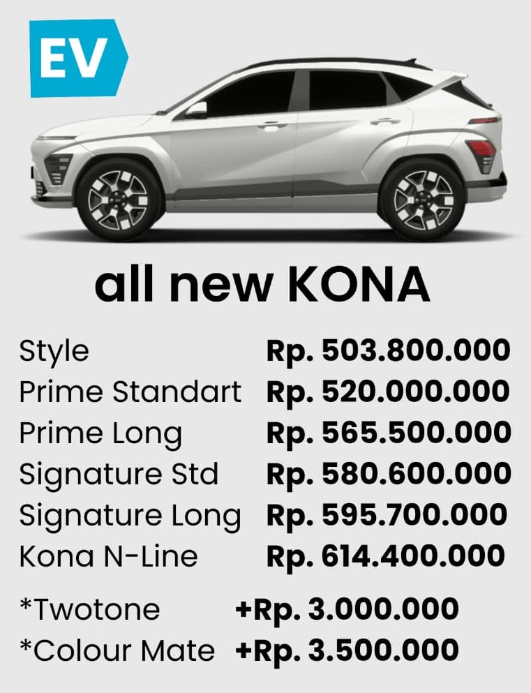 Dapatkan New KONA Electric hanya di dealer resmi Hyundai Arjuna. Untuk informasi lebih lanjut, hubungi Andri, Sales Supervisor Hyundai Arjuna, dan nikmati perjalanan masa depan yang tak tertandingi bersama Hyundai. Segera miliki mobil impianmu sekarang juga